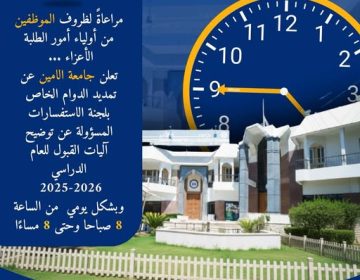 مراعاةً لظروف الموظفين من أولياء الأمور للطلبة الأعزاء تعلن جامعة الامين عن تمديد الدوام بلجنة الاستفسارات المسؤولة عن توضيع آليات …